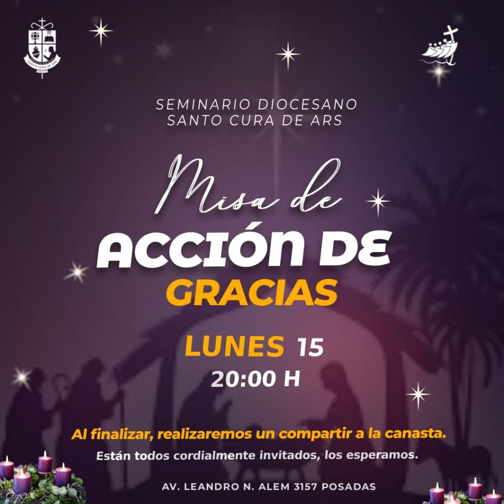 El Seminario Santo Cura de Ars realizará una Misa de Acción de Gracias