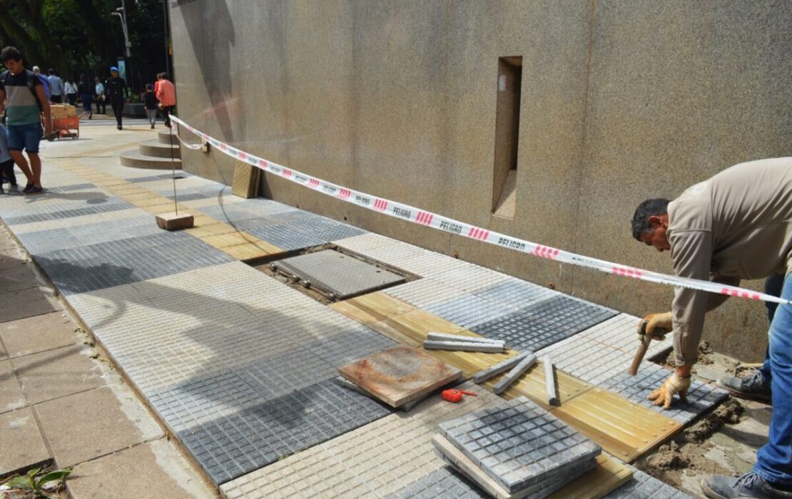 Colocan baldosas podotáctiles en la calle Paseo Colón de Posadas