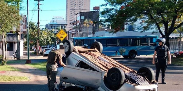 Choque múltiple y vuelco en el centro de Posadas dejó tres heridos, entre ellos dos niños
