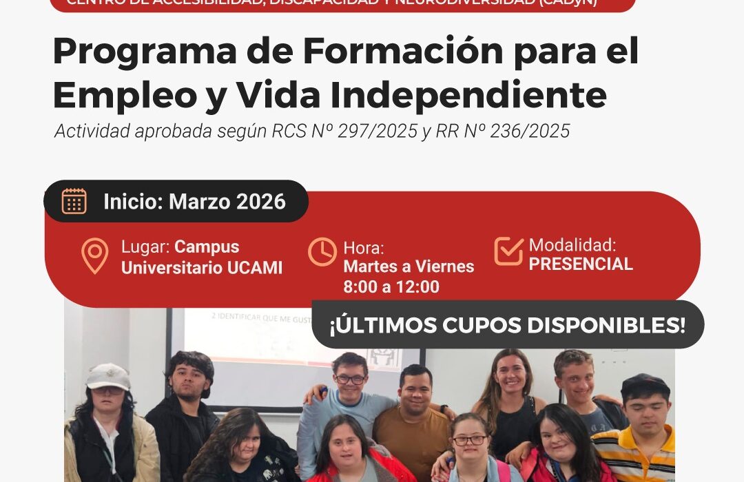 La Universidad Católica de las Misiones (UCAMI) comenzará el próximo 10 de marzo el Programa de Formación para el Empleo y la Vida Independiente, una propuesta...