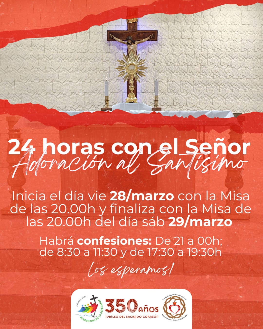 La diócesis de Posadas se prepara para vivir una intensa jornada de fe y encuentro con Dios en la tradicional iniciativa «24 horas con el Señor». El evento espiritual se desarrollará en la Parroquia Sagrado Corazón de Jesús – Templo Jubilar (Av. Juan Domingo Perón 1426, Miguel Lanús), desde las 20:00 horas del viernes 28 de marzo hasta la misma hora del sábado 29 de marzo.