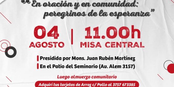 El equipo de comunicación del Seminario Diocesano Santo Cura de Ars cordialmente invita a la comunidad a participar en la Fiesta Patronal 2024, bajo el lema «En oración y en comunidad: peregrinos de la esperanza». El evento se llevará a cabo el próximo 4 de agosto con la Misa Central a las 11:00 horas en … Sigue leyendo Adquirí tus tarjetas de arroz con pollo o reservá empanadas y pastelitos para la Fiesta Patronal del Seminario