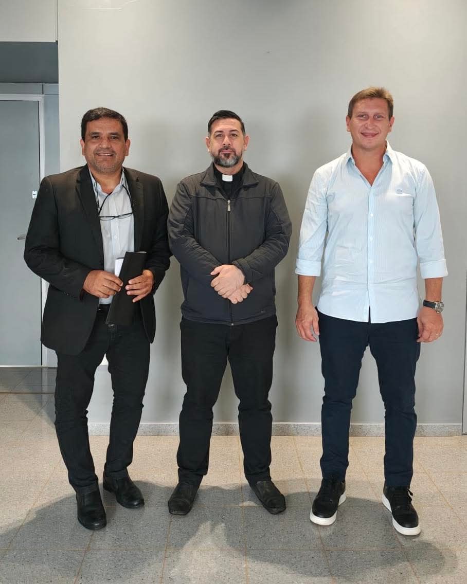 El vicario general de la Diócesis de Posadas, monseñor Sebastián Escalante; el presidente de la Cámara de Representantes, Sebastián Macías; y el director ejecutivo del Servicio Provincial de Enseñanza Privada de Misiones (SPEPM), Luis Bogado, mantuvieron una reunión de trabajo.