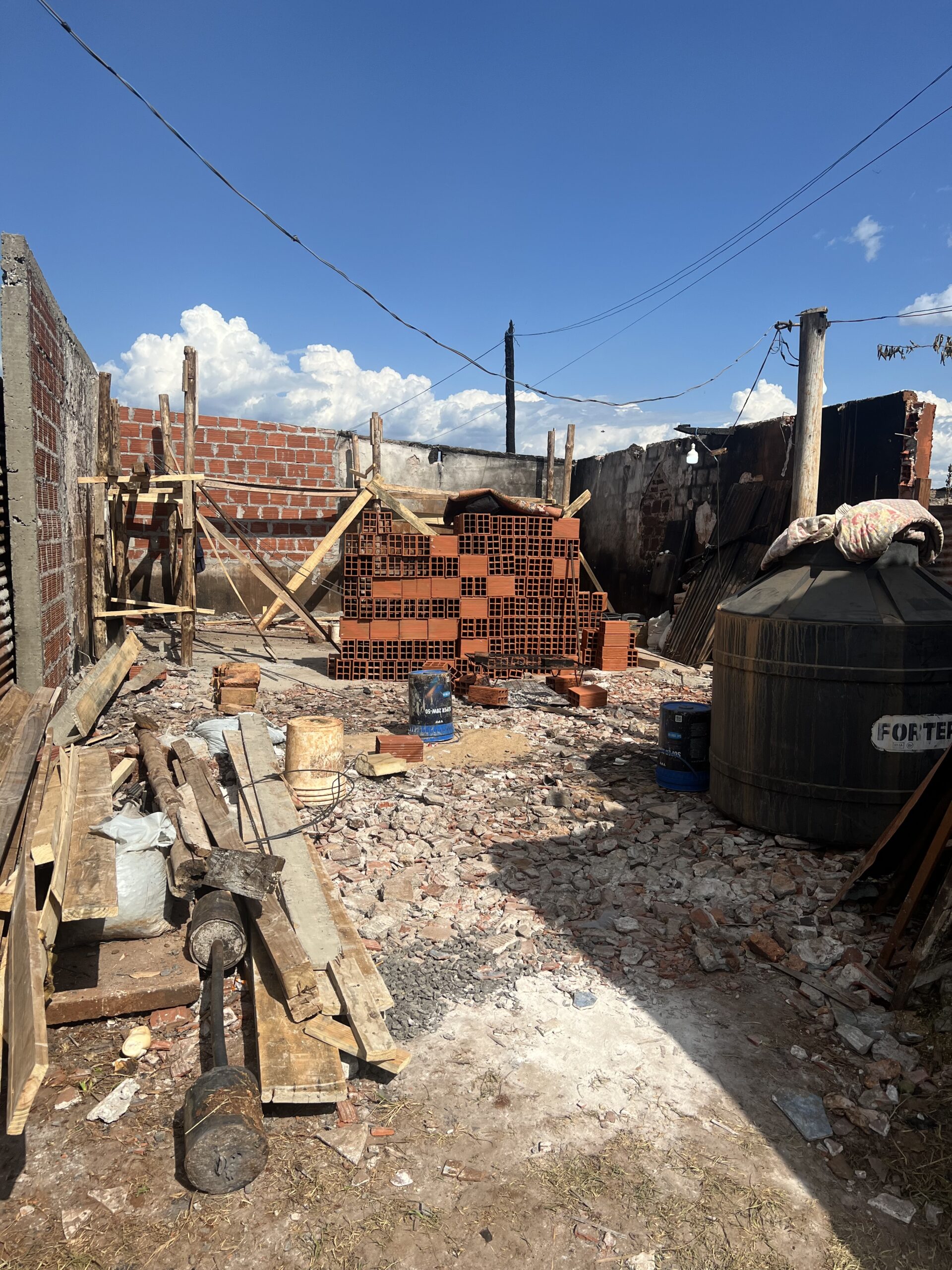 A pocos días del siniestro que arrasó con seis viviendas en el barrio Los Oleritos, la solidaridad comienza a transformarse en obras concretas. Gracias al aporte de privados y la articulación entre iglesias evangélicas y la Parroquia Jesús Misericordioso, algunas familias ya han podido dar inicio a la reedificación de sus hogares. En paralelo, la Municipalidad de Posadas colabora con la logística de terreno, enviando cargas de tierra y tosca para nivelar los predios afectados.