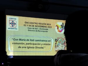 En primer lugar. la directora de Cáritas Posadas presentó el testimonio de Mons. Adolfo Ramón Canecín, obispo de la Diócesis de Goya, quien narró su experiencia en el Encuentro que tuvo como lema: “María de Itatí caminamos en comunión participación y misión de una Iglesia Sinodal”.