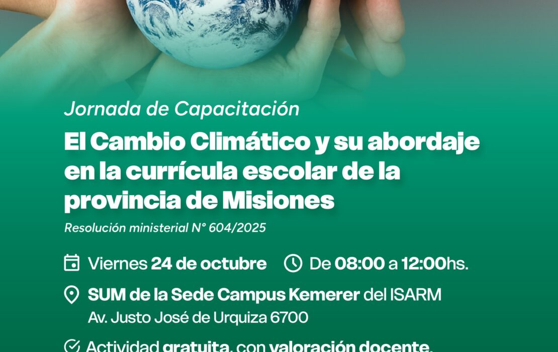 El próximo viernes 24 de octubre, de 7:30 a 12:00, se desarrollará la jornada de capacitación “El Cambio Climático y su abordaje en el currículo escolar...