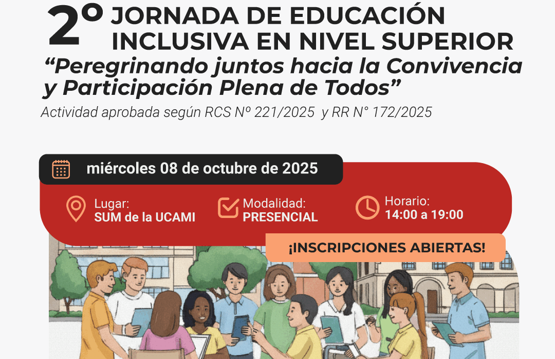 Se llevará a cabo la SEGUNDA JORNADA DE EDUCACIÓN INCLUSIVA EN EL NIVEL SUPERIOR “Peregrinando juntos hacia la Convivencia y Participación plena de Todos” el miércoles...