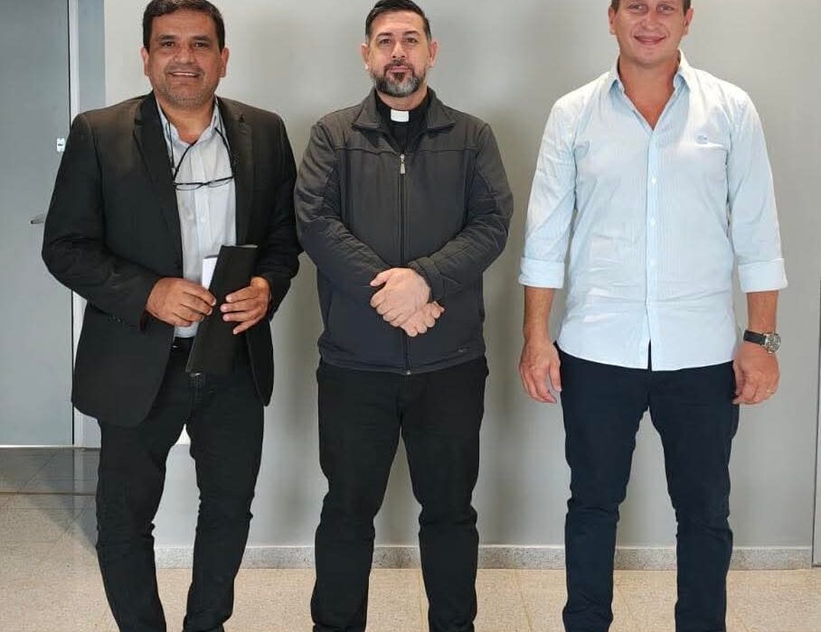 El vicario general de la Diócesis de Posadas, monseñor Sebastián Escalante; el presidente de la Cámara de Representantes, Sebastián Macías; y el director ejecutivo del Servicio...