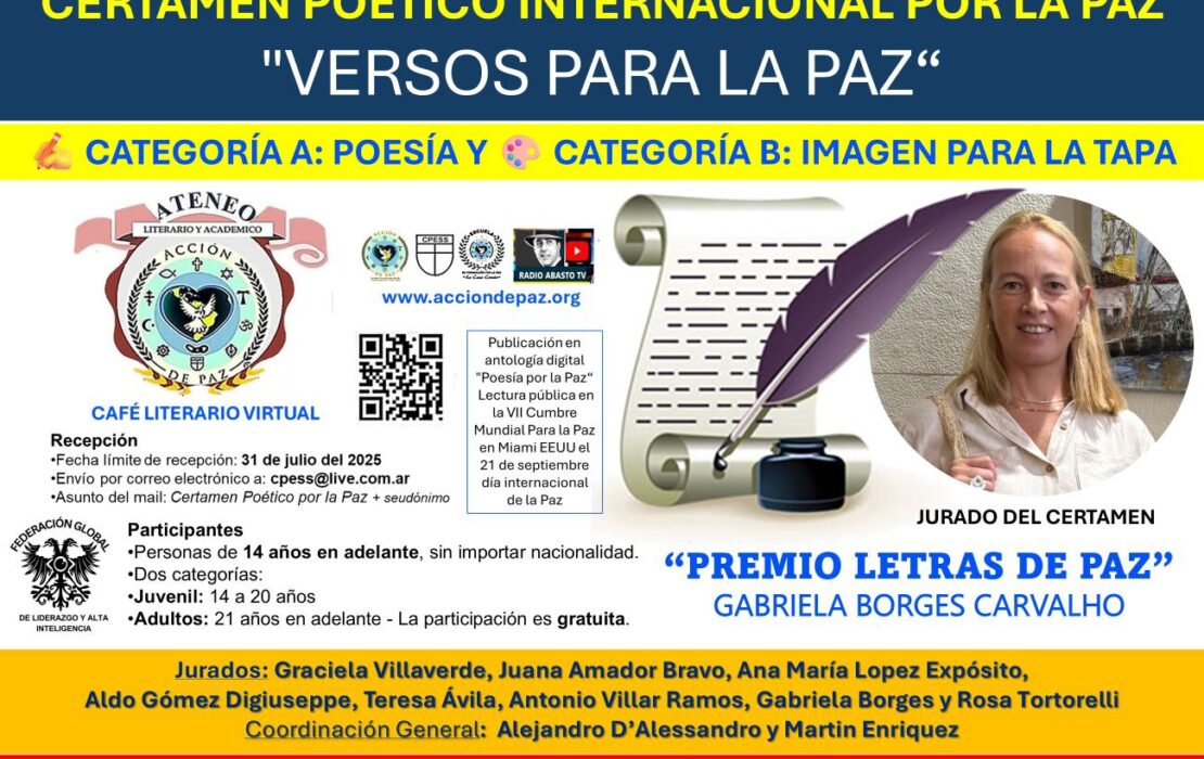 Versos para la Paz: Convocan a un certamen poético internacional con participación gratuita hasta el 31 de julio
