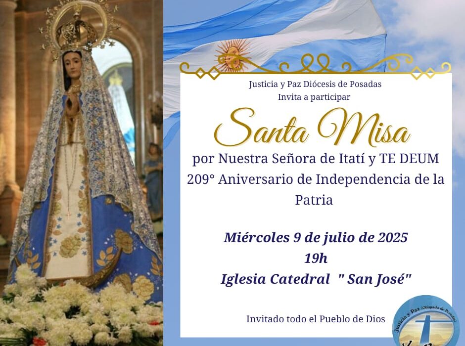 En el marco del 209° aniversario de la Independencia de la patria, la Comisión Diocesana Justicia y Paz de Posadas invita a toda la comunidad a...