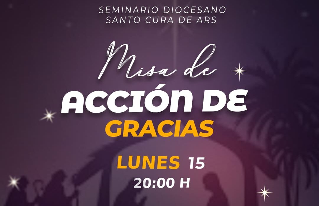 El Seminario Diocesano Santo Cura de Ars anunció la realización de una Misa de Acción de Gracias el lunes 15 a las 20:00, en su sede...