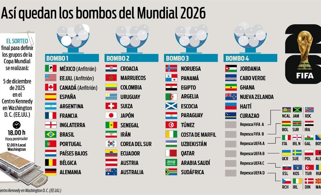 El sorteo de la Copa del Mundo de Estados Unidos, Canadá y México 2026 se realizará este viernes 5 de diciembre a las 14 (hora argentina)...
