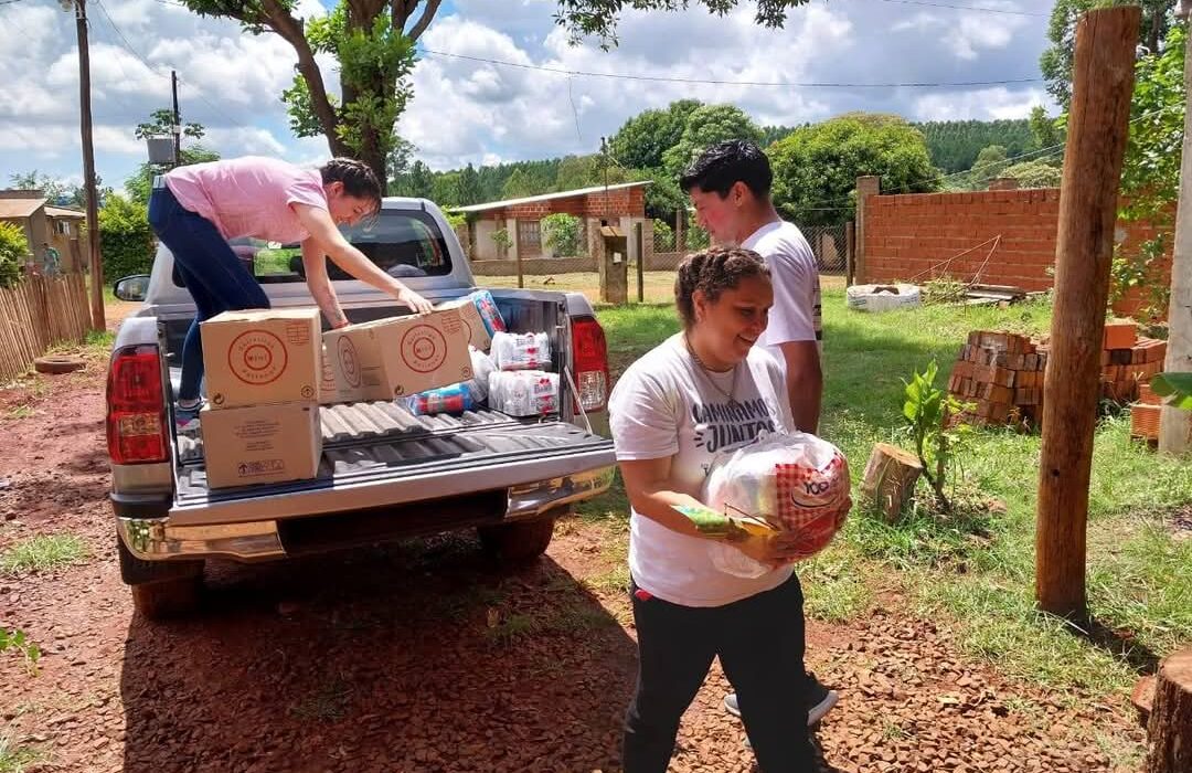 Visita y entrega de donaciones de Cáritas al comedor Ñande Gurises en el Barrio Porvenir II de Posadas