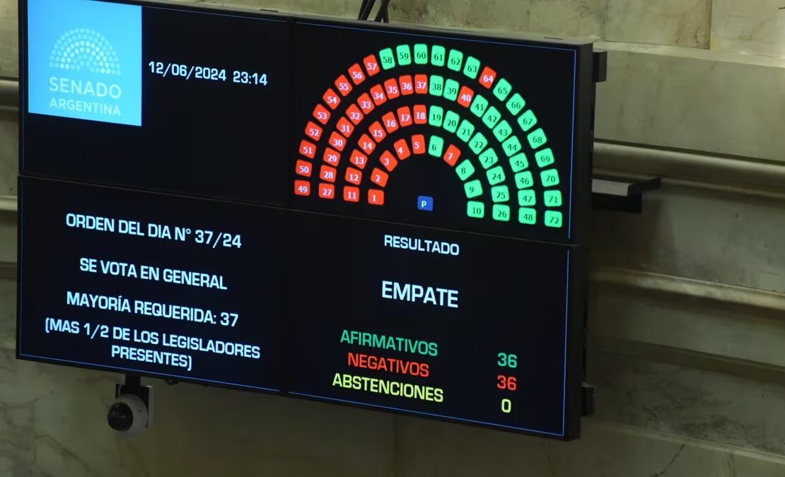 Después de más de 13 horas de intenso debate, la votación general de la Ley Bases en el Senado de la Nación concluyó con un empate...