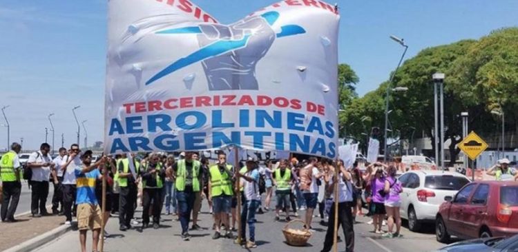 Trabajadores tercerizados de Aerolíneas Argentinas protestan frente a Aeroparque, obstruyendo tres carriles