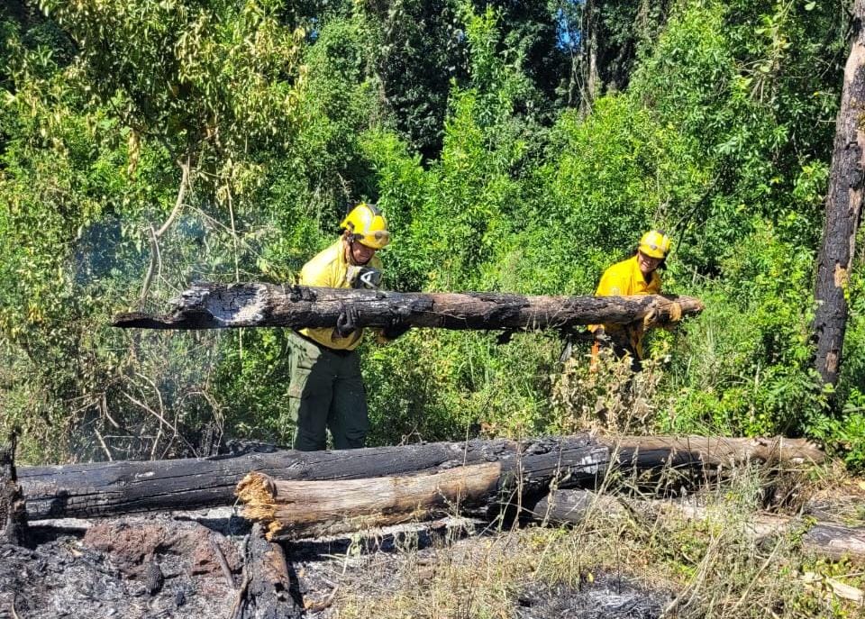 La respuesta ante los incendios incluye un importante despliegue de recursos. Los Municipios contribuyen con camiones cisterna y retroexcavadoras para abrir caminos cortafuegos, mientras que el Helicóptero de la Policía y la División de Drones realizan relevamientos aéreos y apoyan investigaciones periciales.