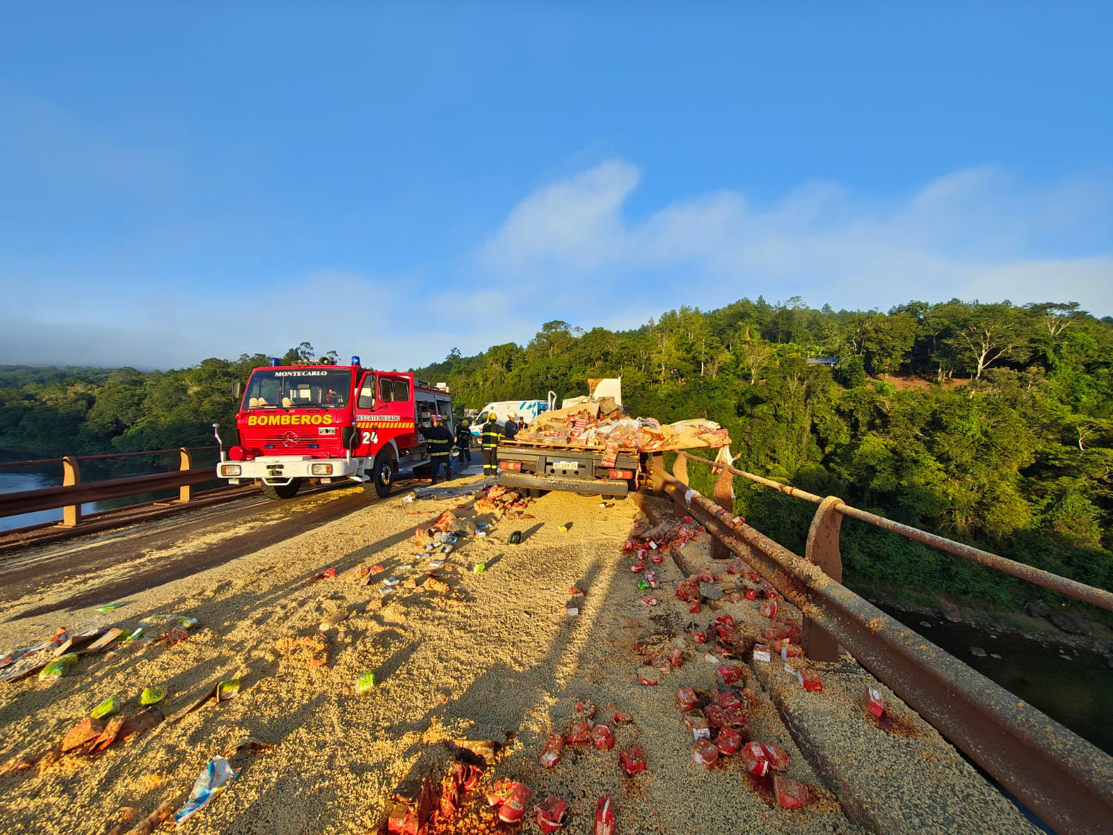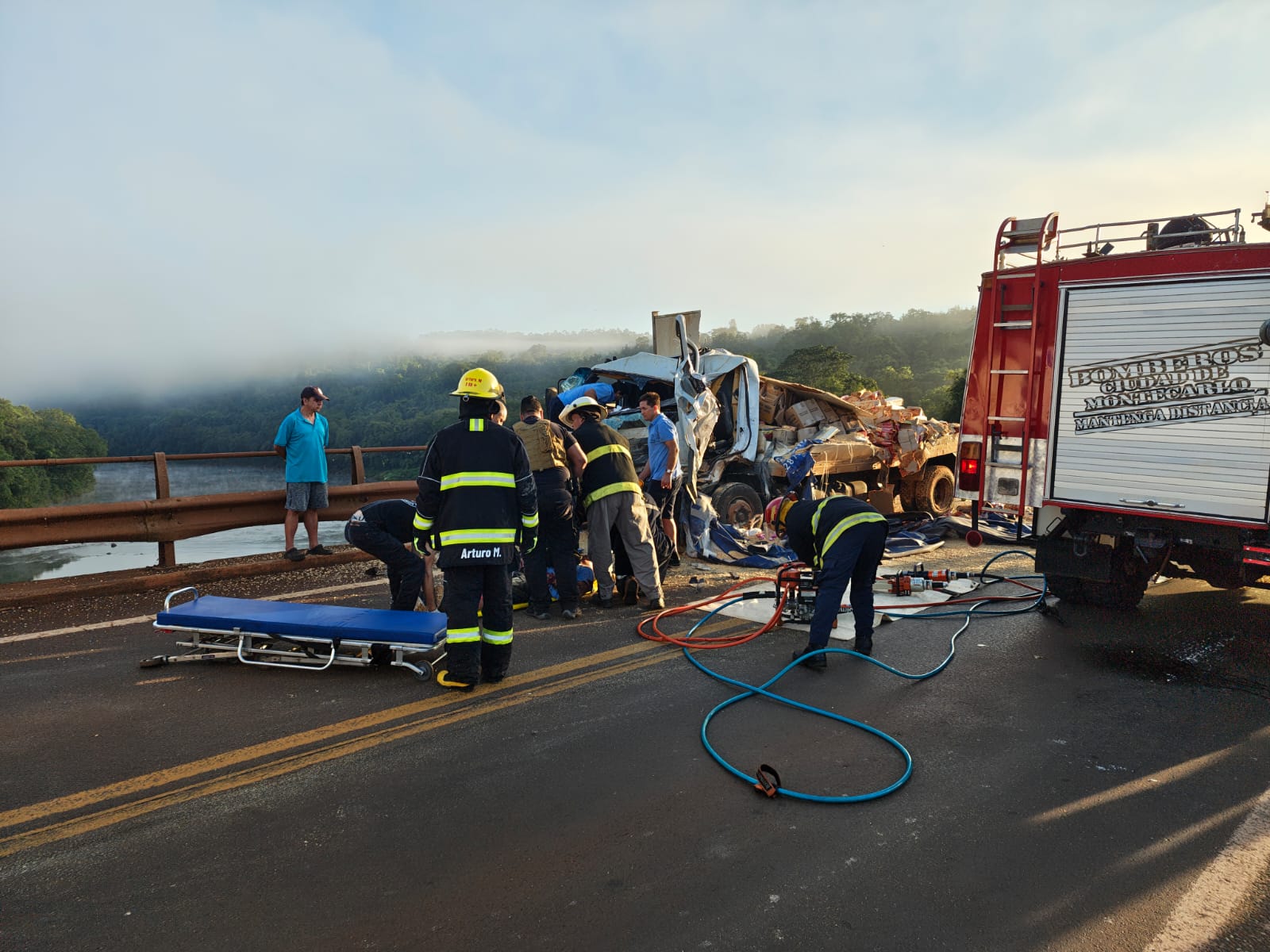 Un siniestro vial registrado a primeras horas de este lunes provocó el corte total de la calzada sobre la Ruta Nacional 12, a la altura del kilómetro 1533,4, en el puente Piray Guazú, en la zona de Eldorado.