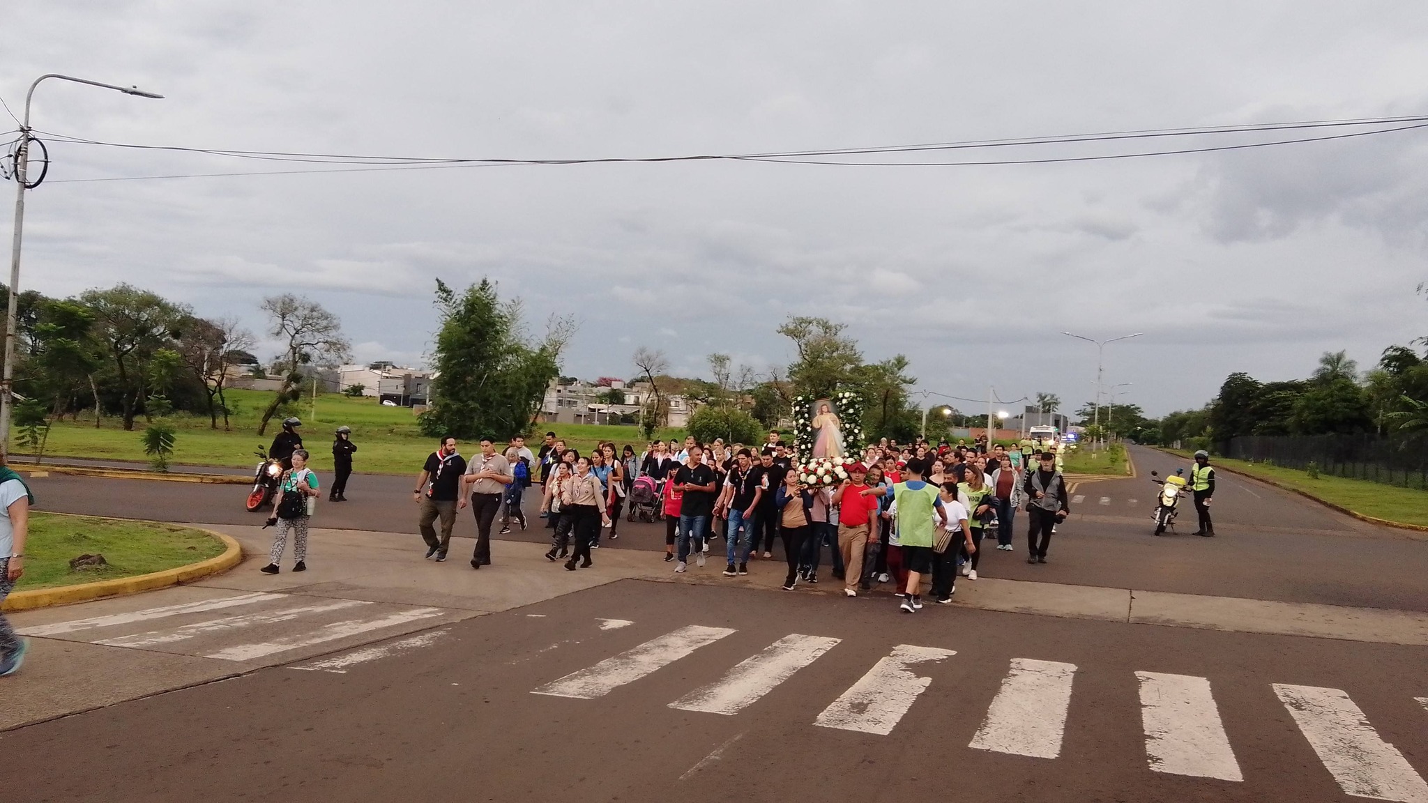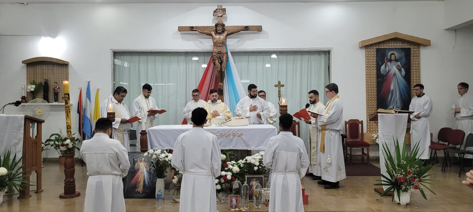 La jornada estuvo marcada por una procesión que partió desde la parroquia San Alberto Magno y recorrió las calles de la ciudad con la imagen de Jesús Misericordioso, culminando en el templo anfitrión donde se celebró la misa central, presidida por el vicario general de la Diócesis de Posadas, Sebastián Escalante.