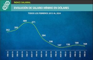 Comparando el salario mínimo de Argentina con el de otros países de la región, el panorama es desalentador. Con un SMVM de tan solo US$164, Argentina ocupa uno de los últimos puestos en el ranking regional, con Venezuela liderando este listado con un SMVM de 3,61 dólares.