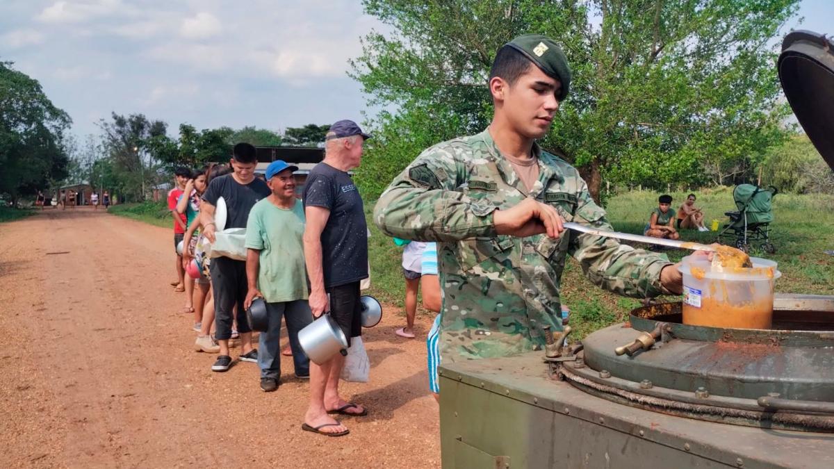 En ese contexto, la Brigada de Monte XII desplegó 2 oficiales, 9 suboficiales, 18 soldados suboficiales cocineros y 10 soldados en la preparación de los alimentos con 1 camioneta, 1 Jeep Hummer con Cocina, 1 VUG 416 con Cocina y 1 Camión MB 1113 con Cocina para realizar labores de asistencia a los evacuados, detallaron desde el ministerio nacional.