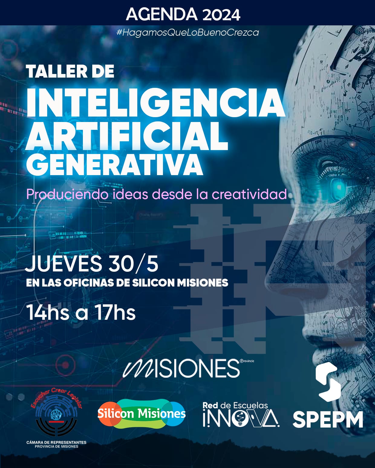 Este jueves 30 de mayo, en las oficinas de Silicon, se llevará a cabo el tercer encuentro del taller «IA Generativa – Produciendo Ideas desde la Creatividad». El evento, organizado junto a la Cámara de Representantes, Silicon Misiones y el Servicio Provincial de Educación Privada de Misiones (SPEPM), está dirigido a docentes de niveles de educación primaria y secundaria de la provincia.