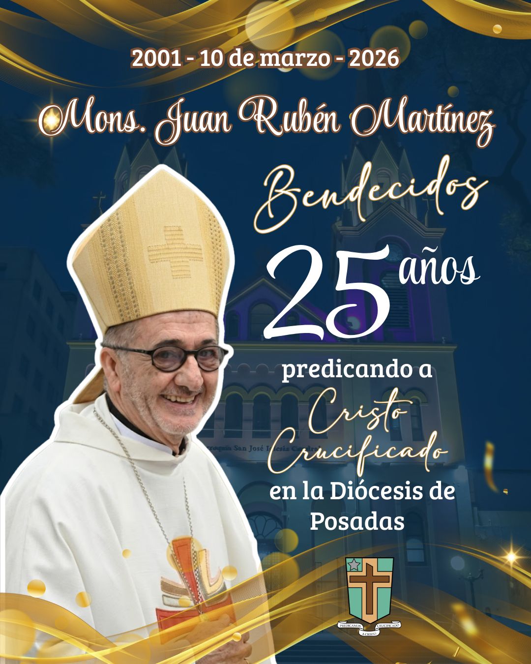 La celebración de acción de gracias por estos 25 años de servicio episcopal se realizará con una misa en la Catedral de Posadas, junto a la comunidad diocesana.