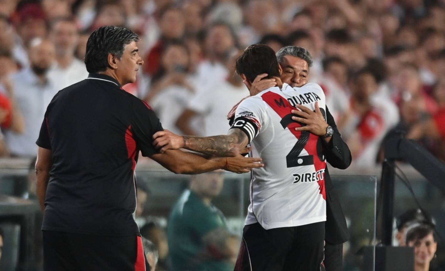 En contrapartida, el nombre de Gallardo fue coreado de manera unánime por los más de 80 mil espectadores presentes. El “Muñeco” recibió una ovación ensordecedora, que se repitió tras el gol de Lucas Martínez Quarta a los 13 minutos, cuando el equipo abrió el marcador y, por un instante, logró apaciguar los ánimos.