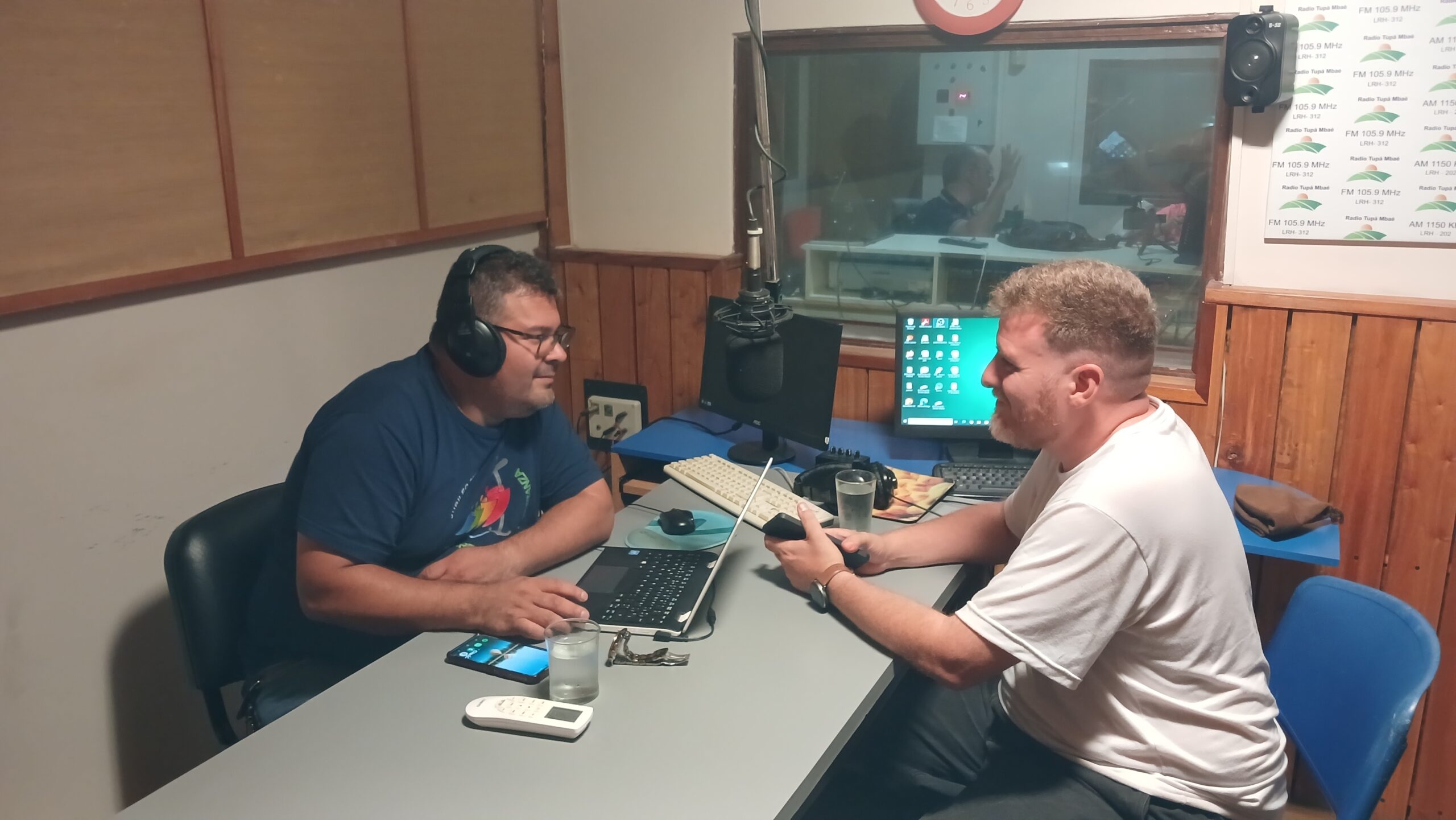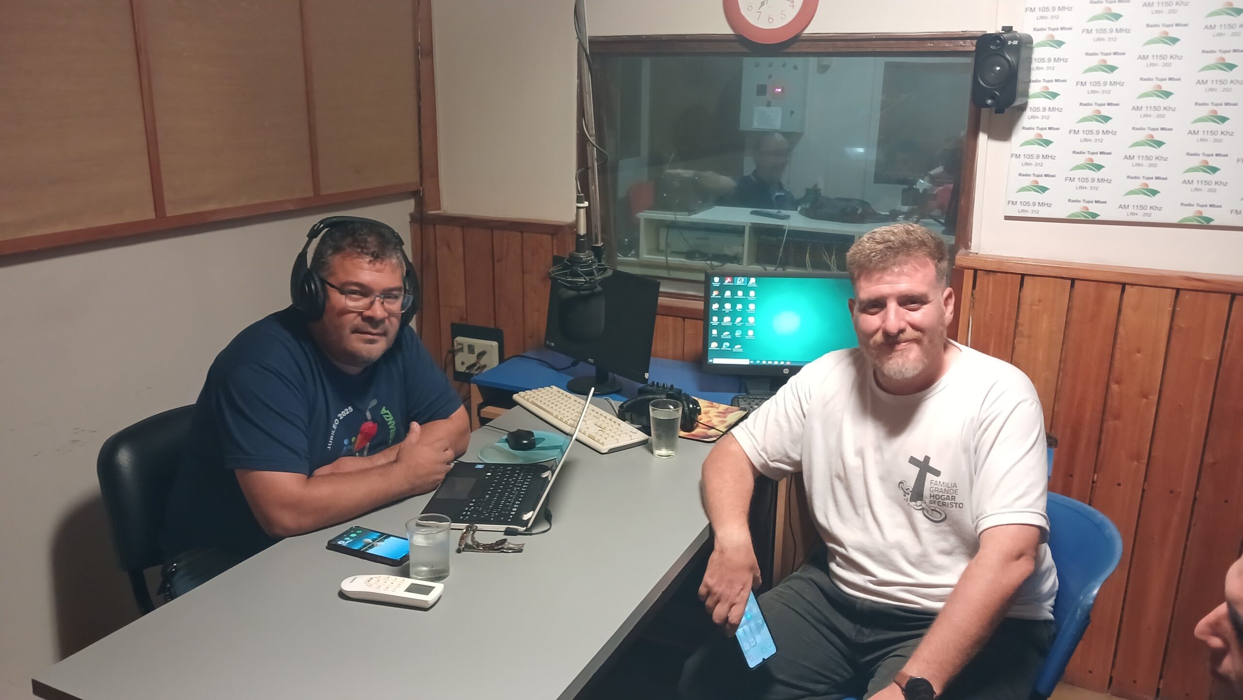 El Padre Alejandro Cañete, conductor del programa Caminando juntos, acompañado por el Padre Daniel Pesce
