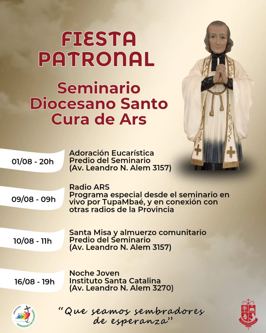 Con la esperanza como guía y la alegría del encuentro, el Seminario Diocesano invita a toda la comunidad a sumarse a esta celebración de fe, que promete ser un momento de unidad, reflexión y renovación espiritual.
