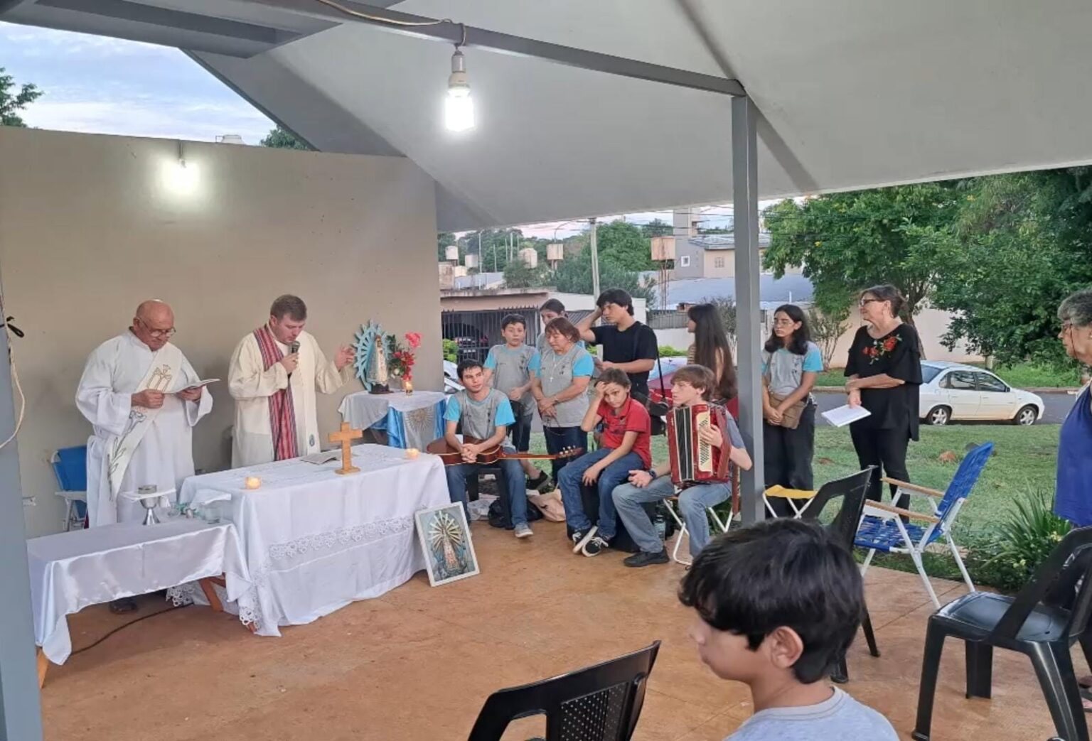“Hace tres años, cuando el obispo Juan me confirió la misión pastoral de acompañar la parroquia San Benito, comenzamos a levantar esta capilla en una zona donde la Iglesia no tenía presencia. Hoy tenemos un piso, un techito, y muchas ganas de seguir construyendo”, relató el sacerdote. La capilla, orientada casi providencialmente hacia el Hogar de Cristo, se erige como símbolo de acompañamiento y contención para los más vulnerables.