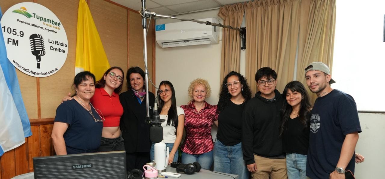 Este viernes, los estudiantes de Productor y Director para Radio y Televisión del Instituto Superior Antonio Ruiz de Montoya (ISARM) se hicieron cargo de la producción del programa Cultura en Diálogo, con la participación especial de alumnos de la Tecnicatura Superior en Gestión del Diseño Gráfico, en el marco del Día del Diseñador. La jornada contó con la supervisión de la Locutora Nacional y Productora de Radio y TV Mirta Prokopiw y de la Especialista María Lorena Ledesma, coordinadora de la Tecnicatura en Gestión del Diseño Gráfico, quienes acompañaron a los estudiantes durante esta experiencia práctica.