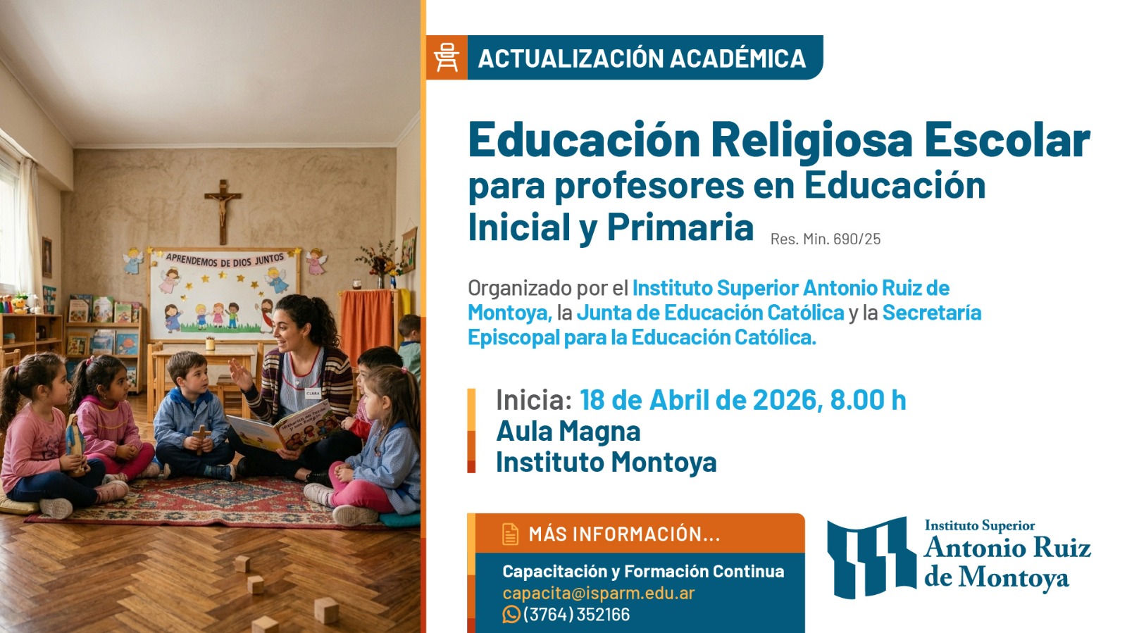El Instituto Superior Antonio Ruiz de Montoya, junto a la Secretaría Episcopal para la Educación Católica y la Junta de Educación Católica, presentan una nueva propuesta de formación denominada “Educación Religiosa Escolar para profesores en Educación Inicial y Primaria”, aprobada por Resolución Ministerial N.º 690/25.
