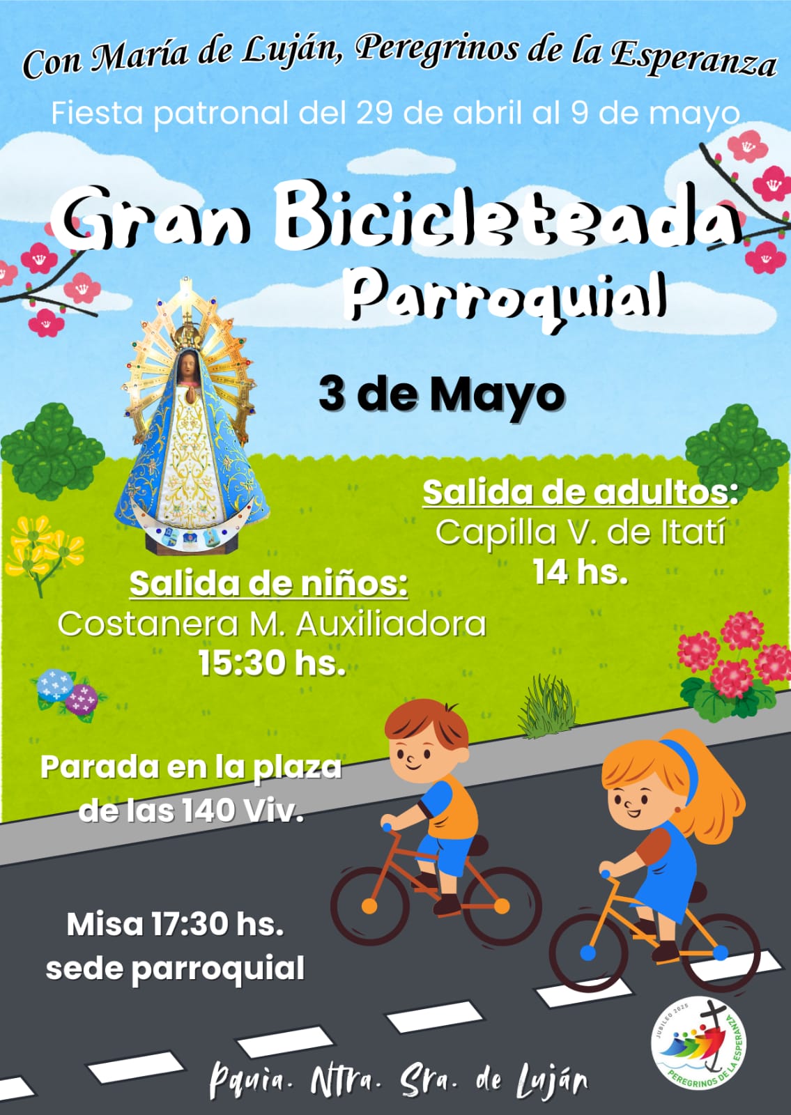 El sábado 3 se realizará la Gran Bicicleteada Parroquial, una verdadera “locura” como la llamó el sacerdote: “Recorreremos Garupá con los niños desde la Costanera “María Auxiliadora” hasta la parroquia, unos 5 kilómetros y medio. Los mayores saldremos desde el Barrio La Esperanza. Es una fiesta sobre ruedas para celebrar la vida y la fe”.