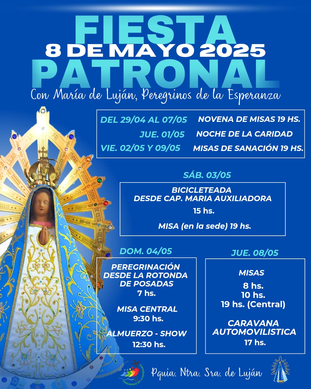 La comunidad de la Parroquia Nuestra Señora de Luján, única en la diócesis con este nombre, está de fiesta. Desde el pasado martes comenzó el tradicional novenario que da inicio a los diez días de celebraciones patronales en honor a la Virgen de Luján, con una intensa programación religiosa, cultural y solidaria que culminará el 9 de mayo. En diálogo telefónico con Radio Tupa Mbae, el párroco Miguel Ángel Moura compartió detalles y el profundo espíritu comunitario que envuelve cada jornada.