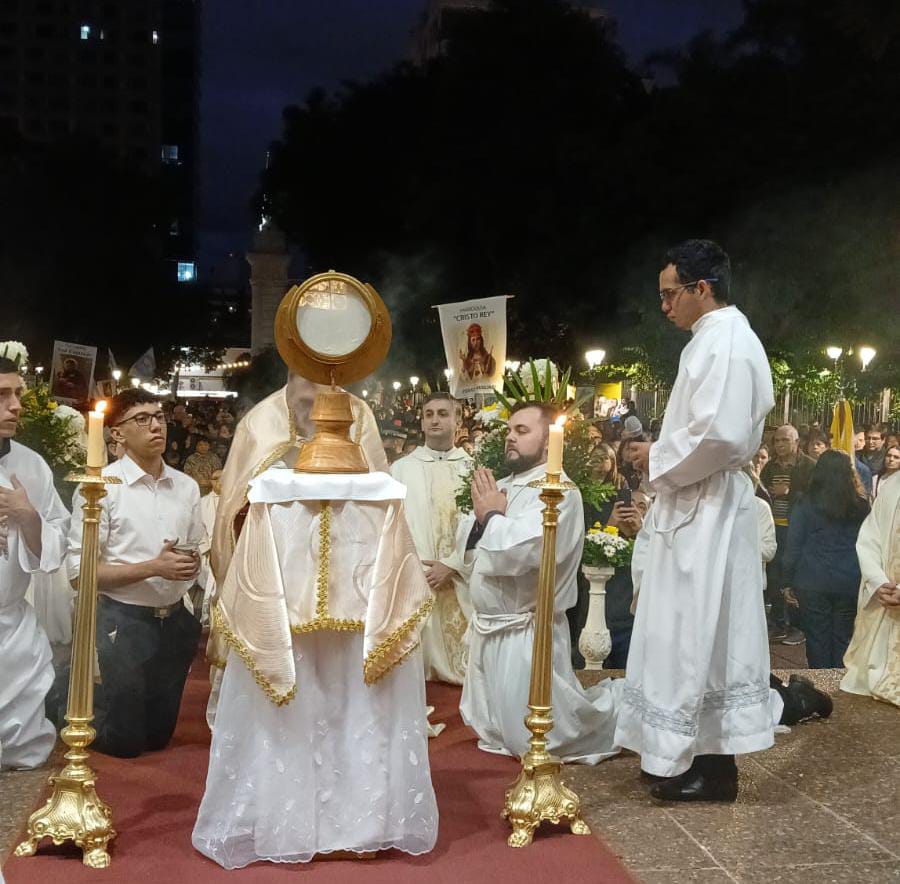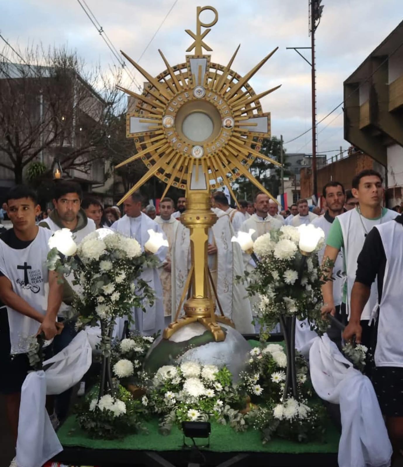 En su homilía, monseñor Martínez destacó el valor central de la Eucaristía en la vida cristiana, invitando a los fieles a profundizar en su significado más allá del ritual, enfatizando su vínculo con la caridad y la solidaridad. Recordó las tradiciones del Corpus en las reducciones jesuíticas guaraníes como un ejemplo de fe encarnada y llamó a “eucaristizarse”, es decir, a traducir la celebración en acciones concretas de amor hacia el prójimo. Rechazó una fe individualista, subrayando que la verdadera fe debe ser comunitaria y misionera, con un compromiso hacia los más necesitados. Finalmente, instó a vivir el Corpus con esperanza, enfocándose en una fe que fomente la justicia social y la solidaridad.