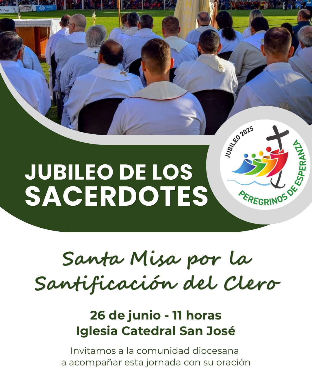 Este jueves 26 de junio, la Iglesia Catedral de Posadas será el lugar de encuentro para celebrar la Jornada Mundial de Oración por la Santificación de los Sacerdotes 2025, bajo el lema «Sacerdotes de Cristo, Peregrinos de Esperanza». La iniciativa se enmarca en el Año Jubilar y convoca a toda la comunidad a orar especialmente por quienes han sido llamados al ministerio sacerdotal.