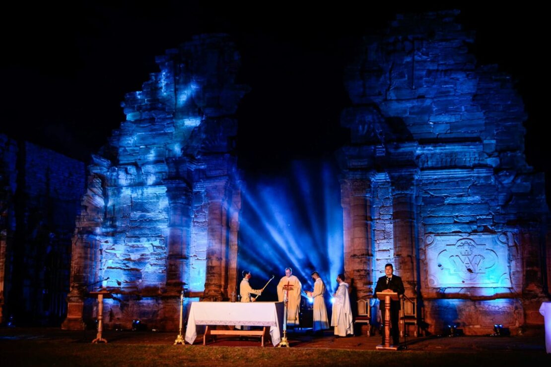 Este jueves, como es costumbre en la región, se llevará a cabo la Misa Popular de las Misiones en el emblemático portal de ingreso al templo principal de la histórica reducción guaraní jesuítica de San Ignacio Miní, en la ciudad de San Ignacio, Misiones.