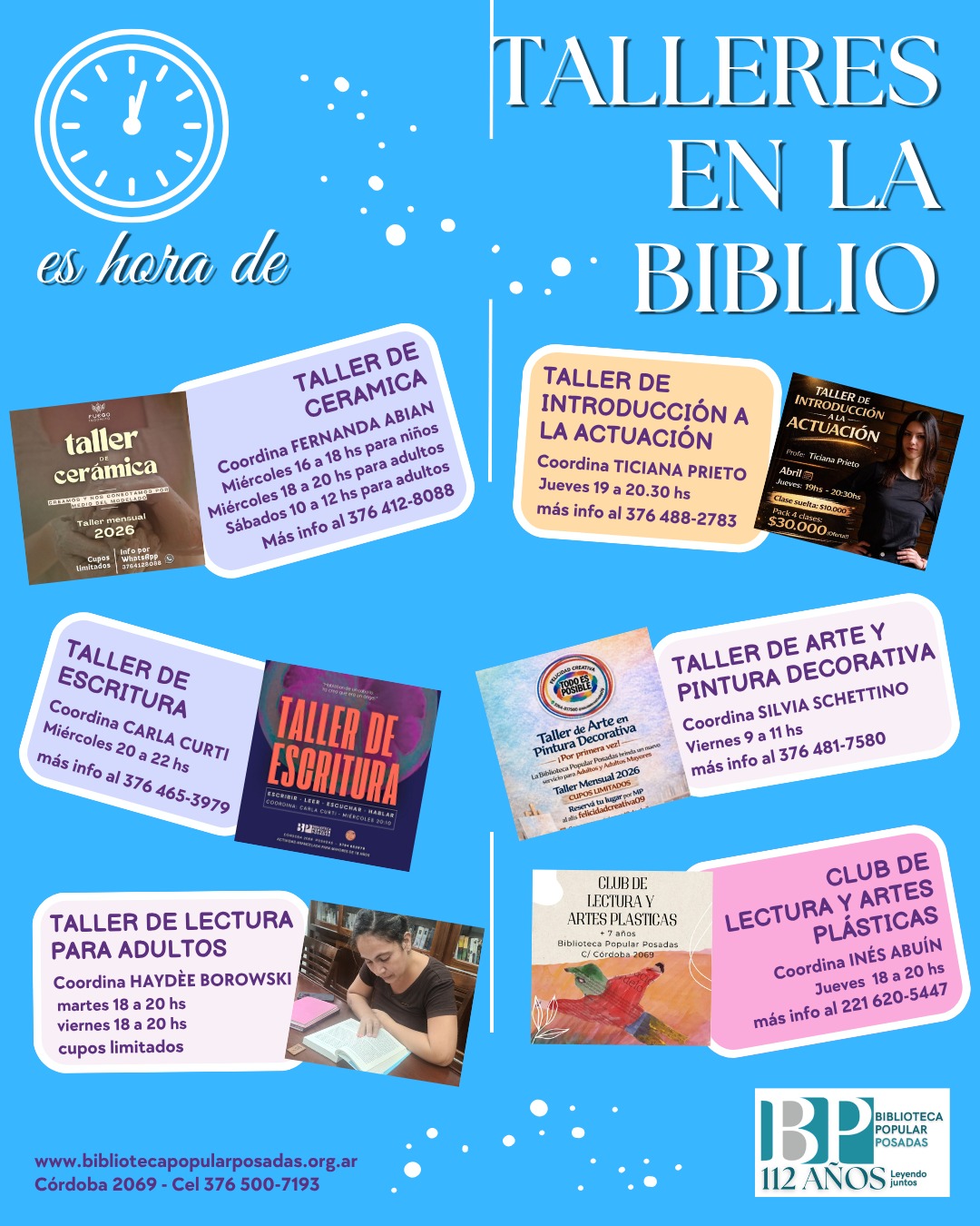 Además, la institución amplió su oferta de talleres con propuestas para todas las edades. Entre ellas se destacan los espacios de lectura, escritura, cerámica, actuación y arte, tanto para niños como para adultos. Varias de estas actividades ya cuentan con cupos completos, lo que refleja el interés creciente de la comunidad.