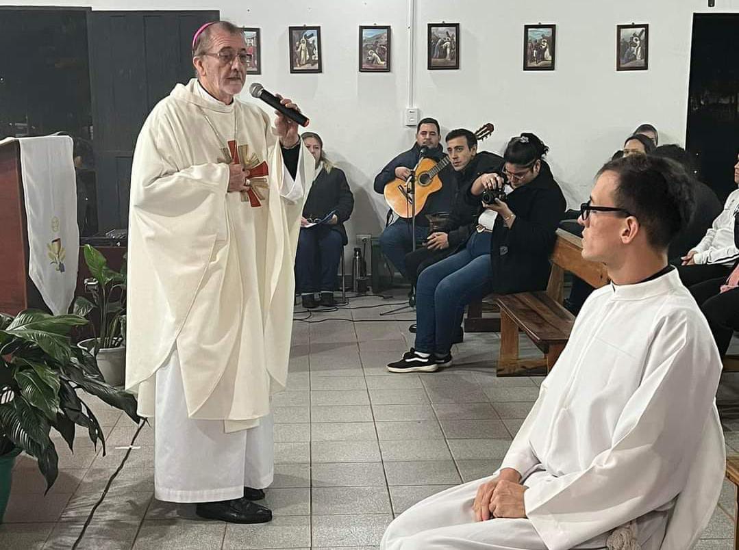 En una emotiva ceremonia llevada a cabo el viernes 5 de julio por la noche, la Capilla San Agustín, perteneciente a la Parroquia Jesús Misericordioso, fue testigo de un momento significativo para la comunidad de la Diócesis de Posadas. Mons. Juan Rubén Martínez, Obispo Diocesano, celebró la Santa Misa de Institución del Ministerio de Acolitado para el seminarista Nicolás Ruíz Díaz.