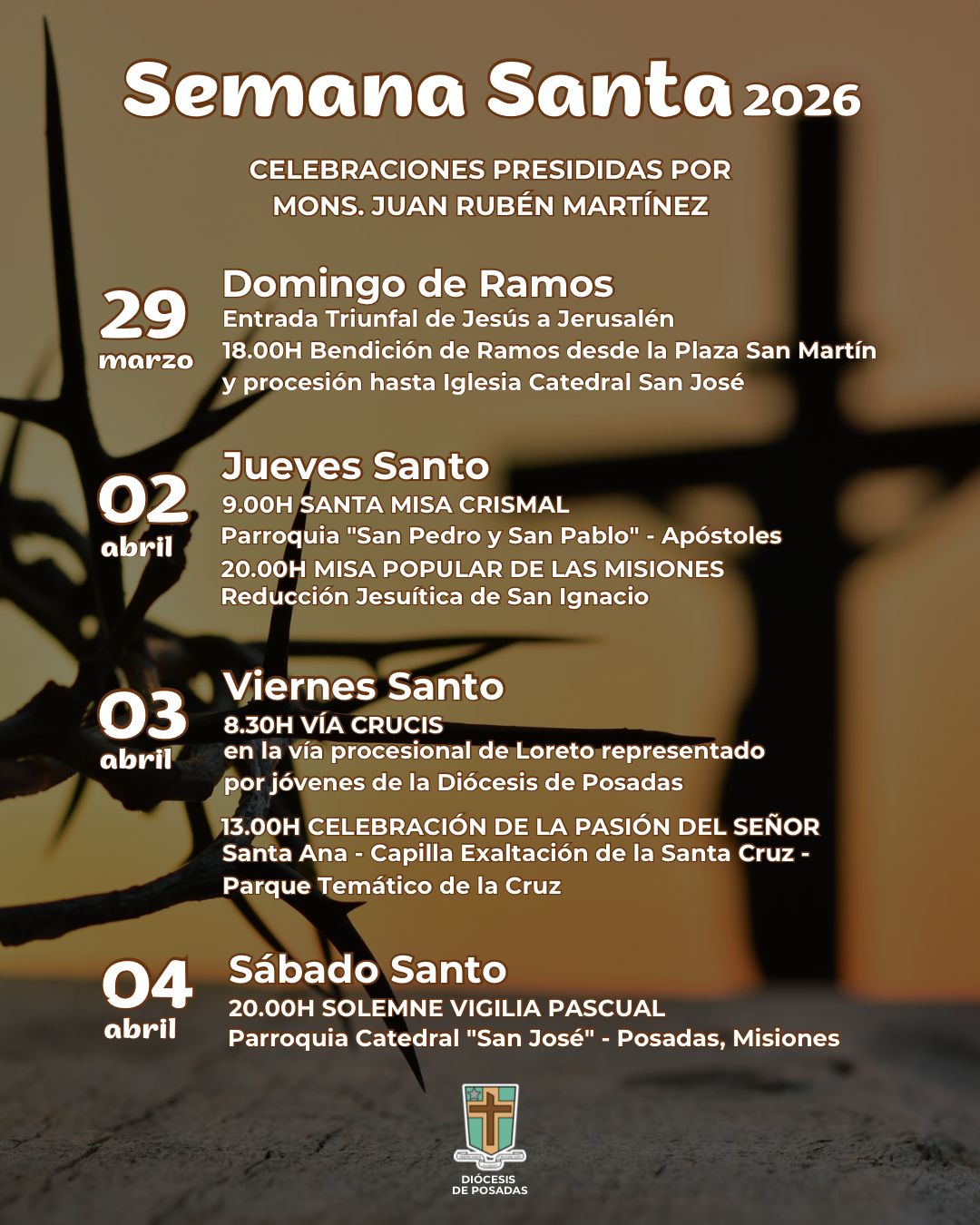 El jueves 2 de abril, las actividades se iniciarán a las 9:00 con la Santa Misa Crismal en la parroquia San Pedro y San Pablo, en Apóstoles. Ese mismo día, a las 20:00, tendrá lugar la Misa Popular de las Misiones en la Reducción Jesuítica de San Ignacio.