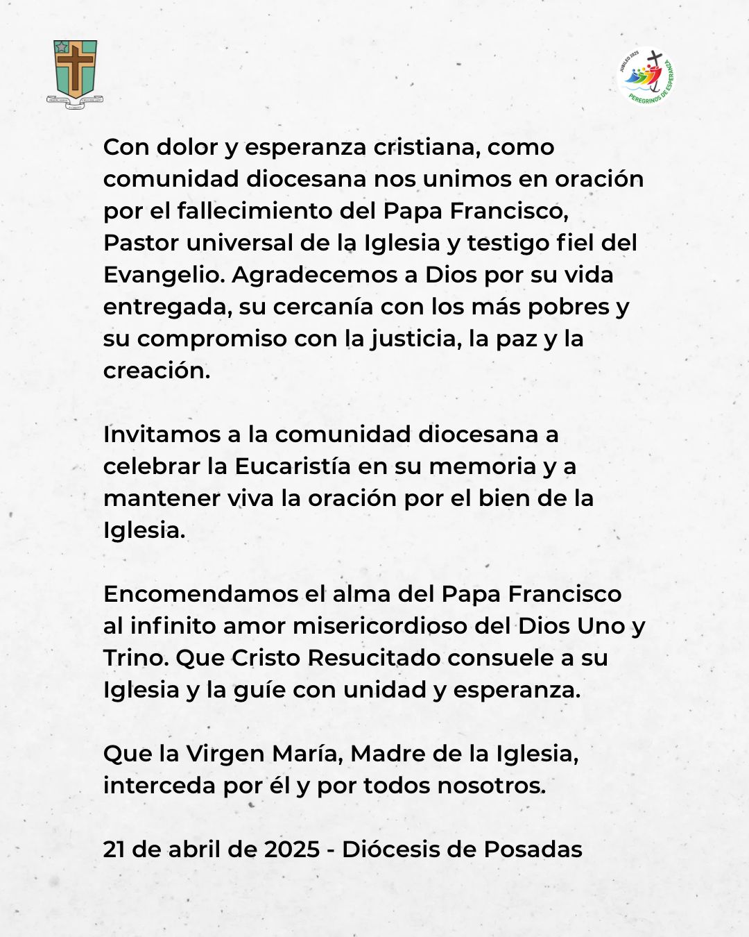 La comunidad diocesana de Posadas mantiene firme su oración, buscando unidad y esperanza mientras afronta este significativo acontecimiento en la vida de la Iglesia Católica.