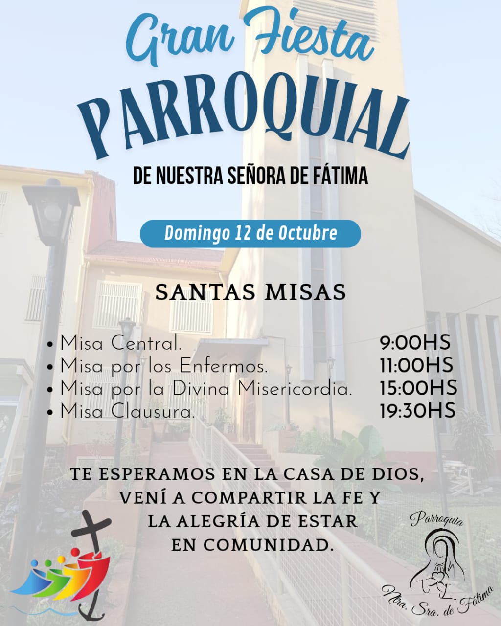 Con el lema “Junto a María de Fátima, encendamos la llama de la paz”, la parroquia de Nuestra Señora de Fátima vive días de intensa preparación espiritual y comunitaria. Este fin de semana se realizarán misas, actividades familiares y un almuerzo comunitario, en el marco de los 60 años del templo ubicado en Garupá.