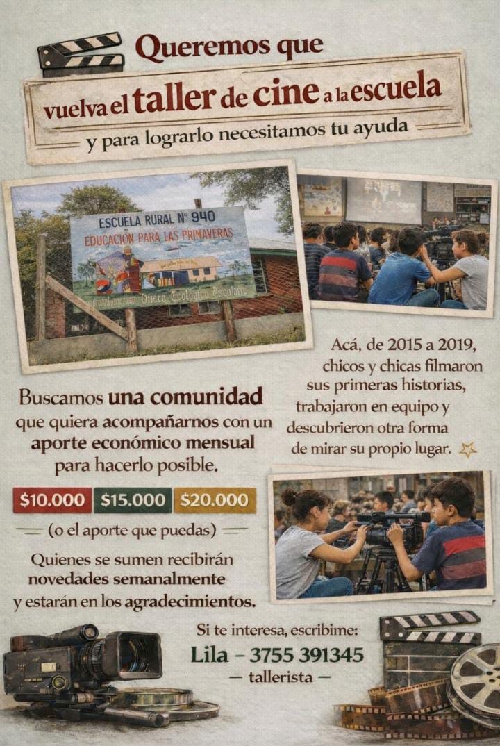 En comunicación con Cultura en Diálogo, la docente Alejandra Rosario Rosi, de la Escuela N.º 940 de El Soberbio, detalló la campaña solidaria que impulsa la comunidad educativa para reactivar el taller de cine en la institución.