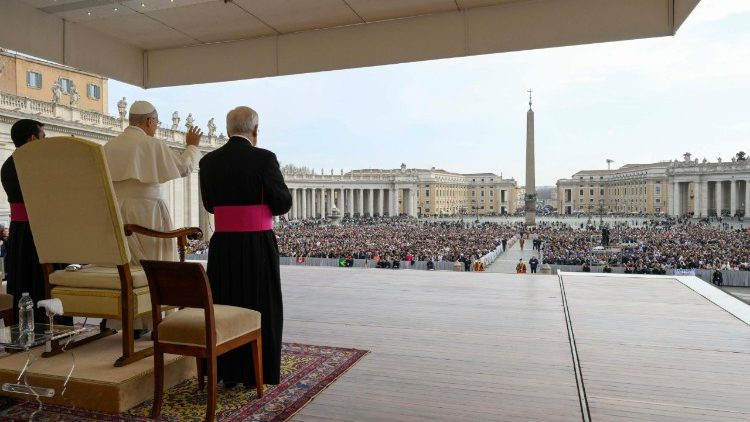 Durante la Audiencia General de este miércoles en la Plaza de San Pedro, el Pontífice sostuvo que la Iglesia, unida en Cristo, no puede encerrarse en sí misma, sino que está llamada a abrirse a todos los pueblos.