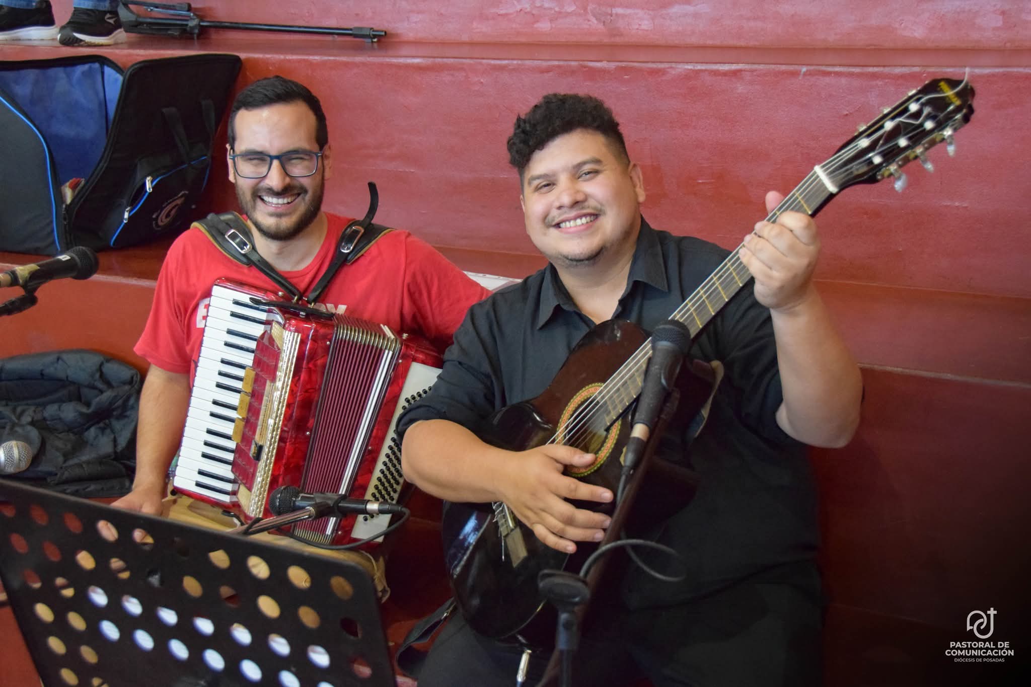 Sobre sus orígenes y los de sus compañeros, comentó con una sonrisa: “Walter es de la parroquia Cristo Redentor de Jardín América; Martín es de Bernardo de Irigoyen; y yo soy de acá, de Posadas”.