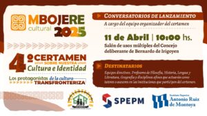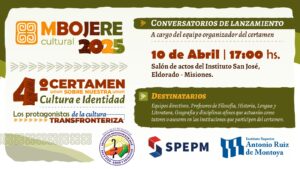 El Proyecto Misiones Mbojere Cultural 2025, certamen que invita a estudiantes del nivel secundario de la provincia, del Norte de Corrientes, de Brasil y de Paraguay, a indagar en la identidad cultural de la región, se pondrá en marcha por cuarto año consecutivo, con conversatorios que se llevarán a cabo en las localidades de Eldorado, Bernardo de Irigoyen y Oberá. De esta forma, capacitadores del equipo organizador de Mbojere Cultural comenzarán hoy a mantener encuentros con equipos directivos, profesores de Filosofía, Geografía, Historia, Lengua y Literatura y disciplinas afines que actuarán como tutores o asesores en las instituciones que participen del certamen y conocerán sus inquietudes en torno a la temática a investigar en la presente edición, titulada “Los protagonistas de la cultura transfronteriza”.