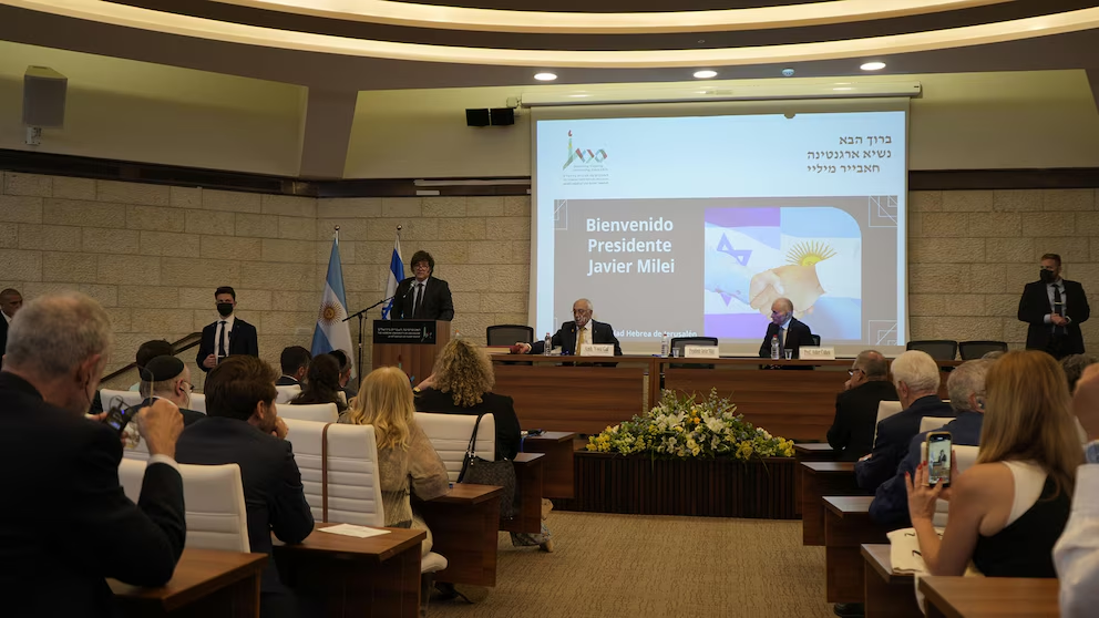 Horas antes, Milei había sido distinguido con el Premio Genesis, conocido como el «Premio Nobel Judío», una condecoración que, por primera vez, fue otorgada a un no judío. Durante su discurso de agradecimiento, el mandatario citó a Jorge Luis Borges: “Si pertenecemos a la civilización occidental, entonces todos nosotros, a pesar de las muchas aventuras de la sangre, somos griegos y judíos”, y remató: “Yo no soy judío, pero eso no me impide sentir como propia la historia del pueblo judío”.