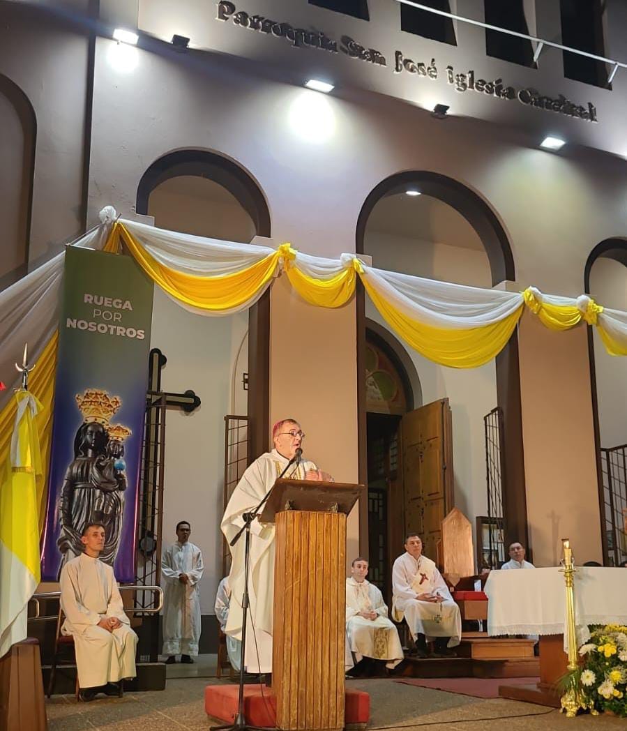 Desde el inicio de su mensaje, monseñor Martínez expresó su alegría por la celebración: «Con una especial alegría estamos celebrando esta Eucaristía, en esta linda noche que el Señor nos regala. En primer lugar, quiero que agradezcamos a Dios. La Eucaristía es una acción de gracias y queremos decirle amén porque podemos estar celebrándolo así a San José».