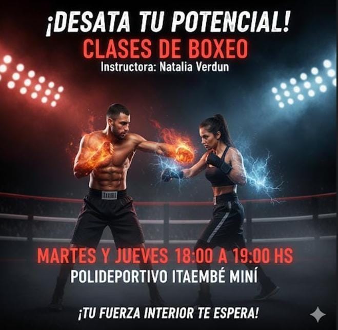 Las personas interesadas en sumarse a las clases de boxeo recreativo pueden acercarse al Club Racing los lunes y miércoles de 20:00 a 21:00, o al Polideportivo Itaembé Miní los martes y jueves de 18:00 a 19:00.