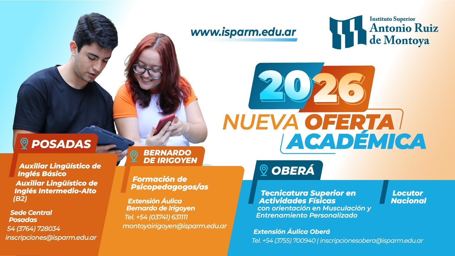 Acompañando los nuevos tiempos, el Instituto Superior Antonio Ruiz de Montoya presenta nuevas ofertas académicas para 2026, tanto en su Sede Central como en las Extensiones Áulicas de Bernardo de Irigoyen y Oberá.